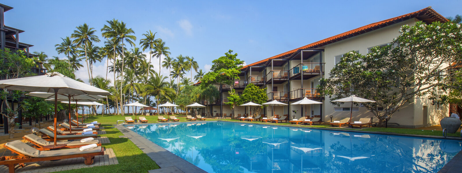 Nestled along the stunning coastline of Kalutara and tucked away in a coconut grove, The Mermaid Hotel and Club offers a true paradise just steps away from a golden sandy beach. The facilities are fantastic, including two swimming pools, reading and games rooms, two gift shops, a restaurant with a sea-view al fresco dining area (serving Sri Lankan specialties and international themed buffets), pool bar, beach bar plus a music and lounge bar (operates twice a week), Sahana spa featuring a sauna, steam bath and Jacuzzi and a sports centre with a gym plus a whole host of activities on offer. These include squash, table tennis, badminton, volleyball, boccia, croquet, aerobics, aqua aerobics, water polo, yoga, darts and pool, so there is plenty to choose from. In the tranquil bedrooms, you can expect everything needed for a comfortable stay, featuring a TV, mini-bar, tea and coffee-making facilities, safe, climate control air-conditioning, hairdryer, mineral water, free Wi-Fi, a balcony or terrace with a day bed and bedside-operated motorised curtains – the perfect way to start each day!