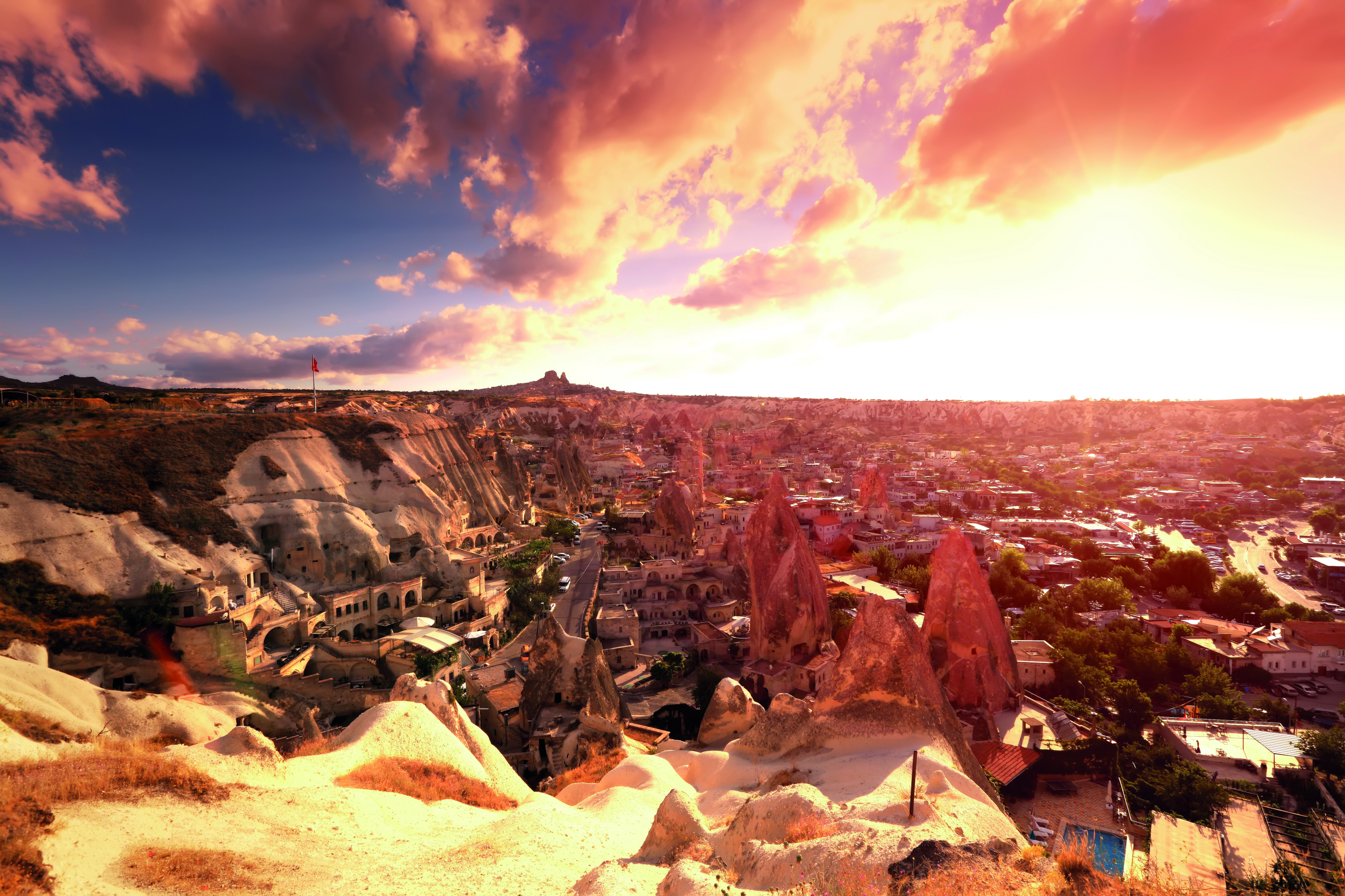 Unwind with an early evening aperitif watching the remarkable sunset over the Red Valley of Cappadocia.