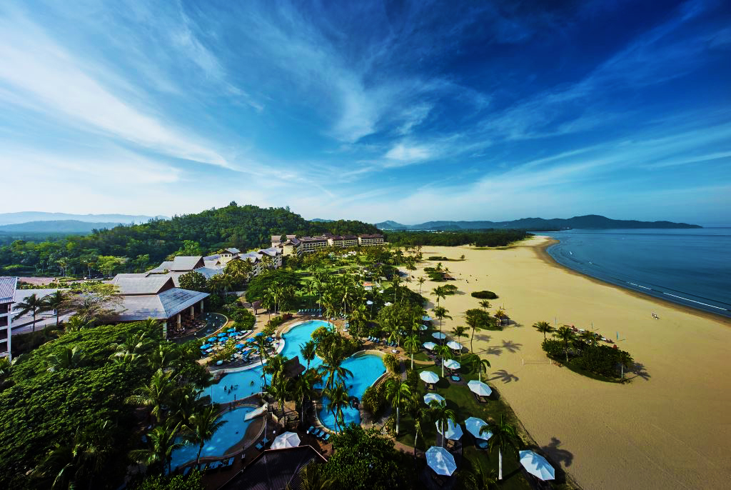 The Shangri-La Rasa Ria is a luxurious five-star resort. Besides the long white-sand beach, there’s a huge free-form pool, fitness room, tennis courts and the renowned Chi Spa. Activities include a variety of watersports, bicycle tours, a river boat trip, horse riding, fishing, diving, golf and walks through the resort’s nature reserve.
