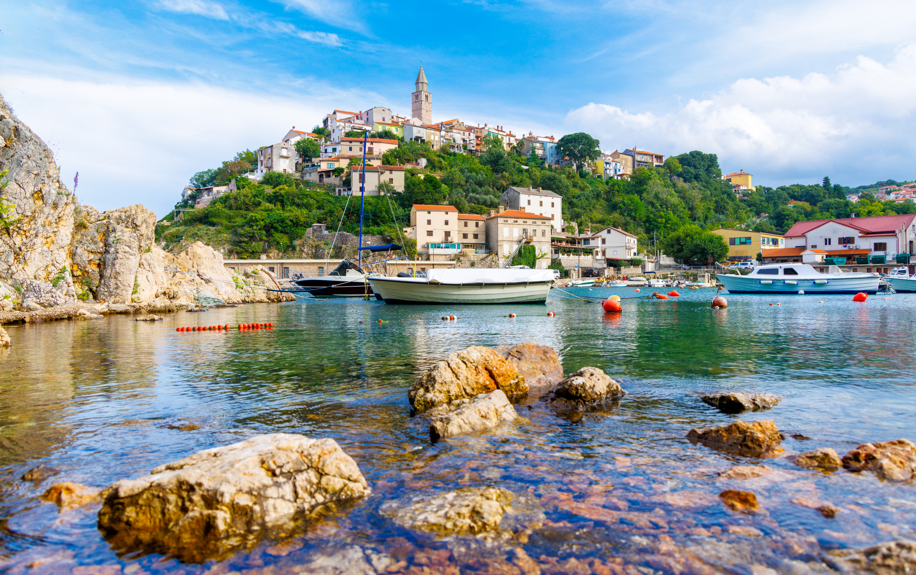 Krk Island is connected to the mainland by a 1,430-metre-long bridge, which we'll cross on our journey. From the comfort of the coach, you'll be treated to glittering views of the sea and rocky limestone coastline covered in patches of sub-mediterranean foliage and pine forests. Our first stop is the island's eponymous walled town, where we'll enjoy a guided tour.