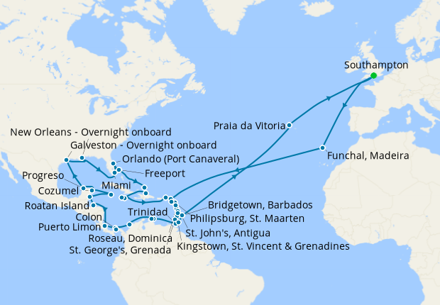 No-Fly Caribbean Grand Tour from Southampton cruise