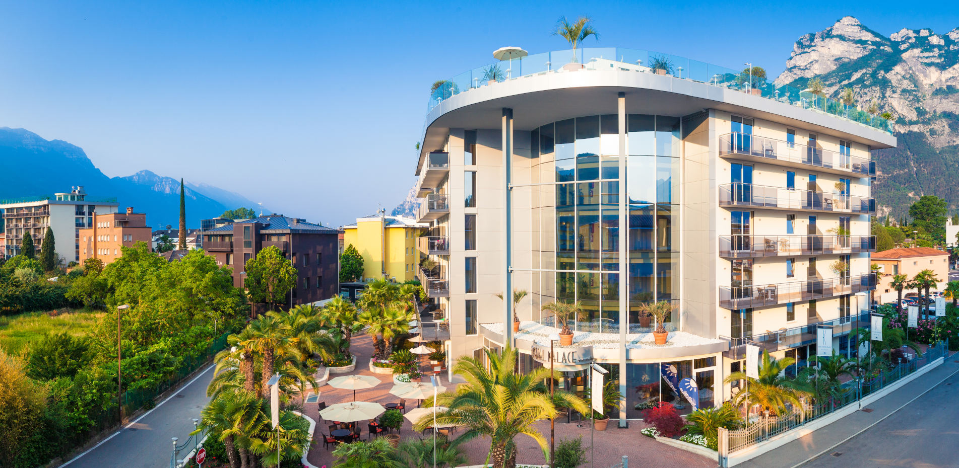 The four-star superior boutique Hotel Kristal Palace is arguably one of the lake's finest hotels and is extremely proud of its many accreditations. On arriving you will instantly recognise everything about this luxurious property exudes comfort and the utmost good taste in a modern style. Opened in 2011, the lobby makes extensive use of warm pastel coloured marble, leather settees and tinted glass whilst fine art adorn the walls. The rooms themselves are a real quality statement feature hardwoods, marble, superb fabrics the finest bed linen and leather headboards, they scream craftsmanship. The bathrooms feature the most contemporary fittings, powerful invigorating showers and quality bathroom cosmetics. Food is a real passion here and in the restaurant, with views into the kitchen, talented chefs will truly exceed your expectations. Imaginative fine dining and fresh seasonal produce is the theme with classic Italian cuisine presented with a modern twist to really excite your palate. The atmosphere is enhanced by exquisite glass and tableware, fresh flowers, even the bread is baked on site, the whole concept is a quality restaurant in its own right and an unobtrusive pianist completes the atmosphere. On the roof is a real gem, the heated swimming pool surrounded by a roof terrace with sun-loungers, affording an amazing 360 panoramic view of the stunning lake surrounded by its majestic mountains. Weather permitting you can enjoy breakfast here, plus there is a bar which is a wonderful place to unwind after a day's sightseeing whilst enjoying the view. Please note the use of air conditioning and outdoor pool opening is at the discretion of the hotel.