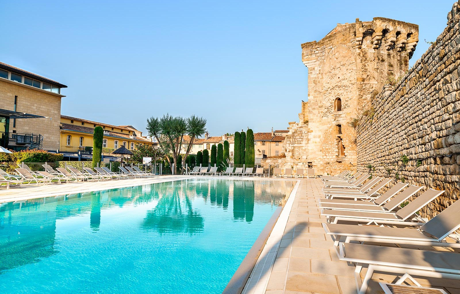 The four-star rated Novotel Aix Beaumanoir is purpose-built property with comfortable rooms with air conditioning, satellite TV, safe and private facilities. Set in its own garden the hotel has a pleasant bar and restaurant, outside terrace and swimming pool open all year round and staff are extremely friendly and welcoming. Stays at this hotel include two dinners at the hotel restaurant. Please note, the use of air conditioning is at the discretion of the hotel.